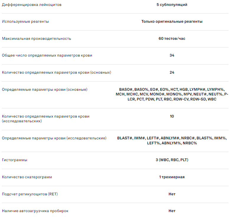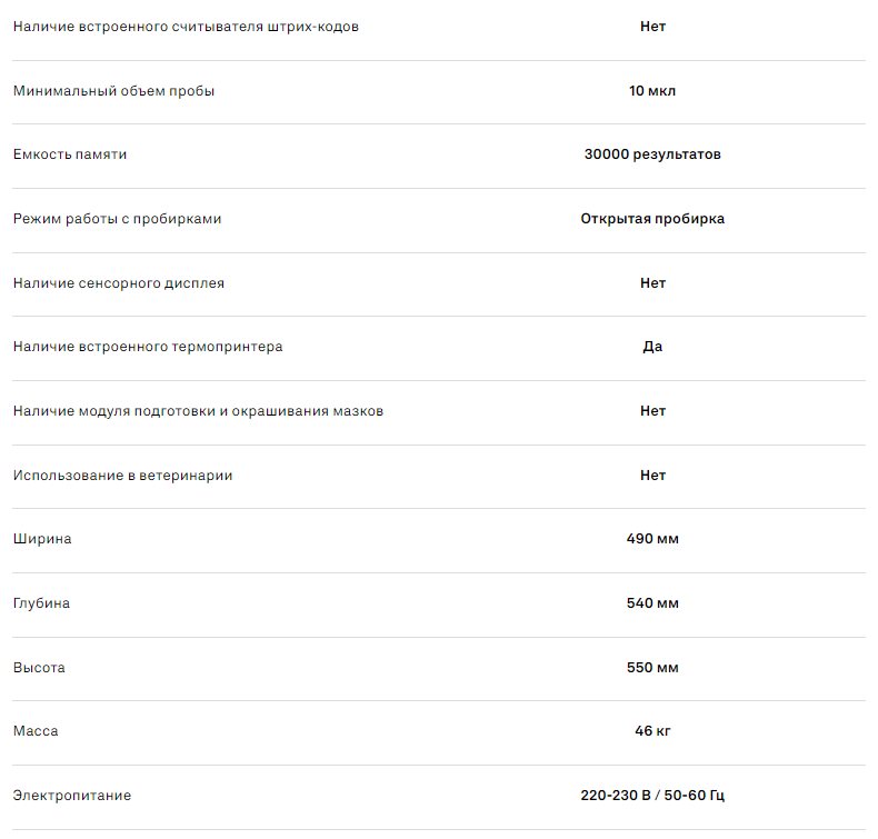 Управление анализатором осуществляется с помощью персонального компьютера со специальным программным обеспечением. Встроенный термопринтер обеспечивает мгновенную печать полученных результатов. Все данные и гистограммы выводятся на экран ПК. Идентификация реагента происходит после считывания специального штрих-кода. Через определенное время проводится автоматическая промывка внутренних частей анализатора. Небольшие габаритные размеры позволяют сэкономить место на рабочем столе лаборанта.