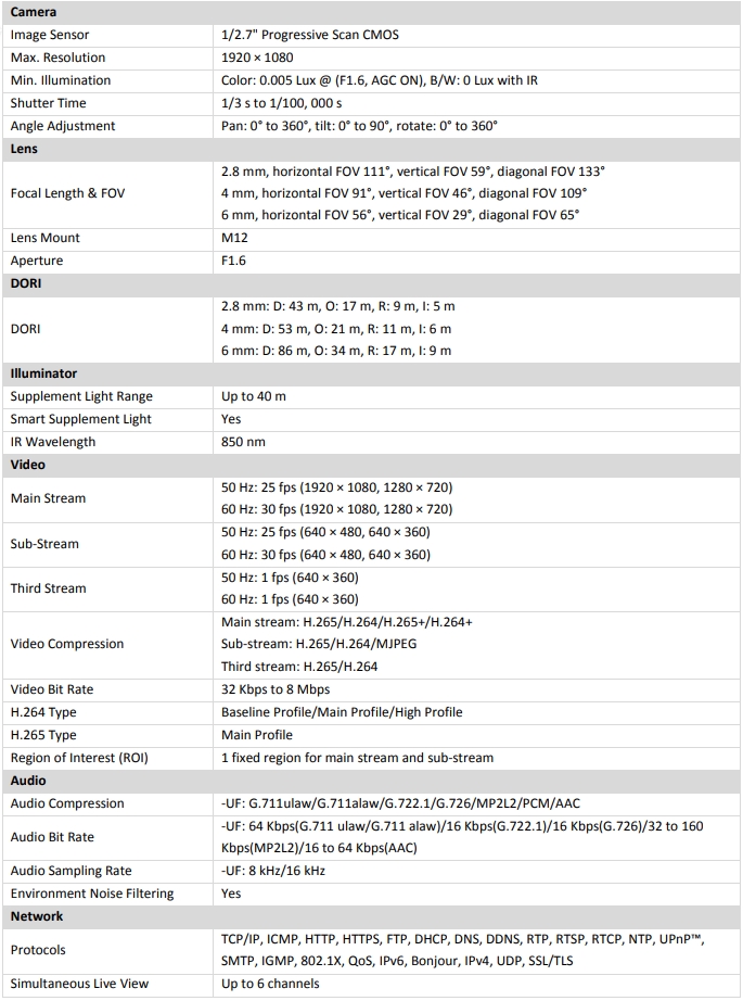 - Эффективная технология сжатия H.265+ для экономии полосы пропускания и хранилища