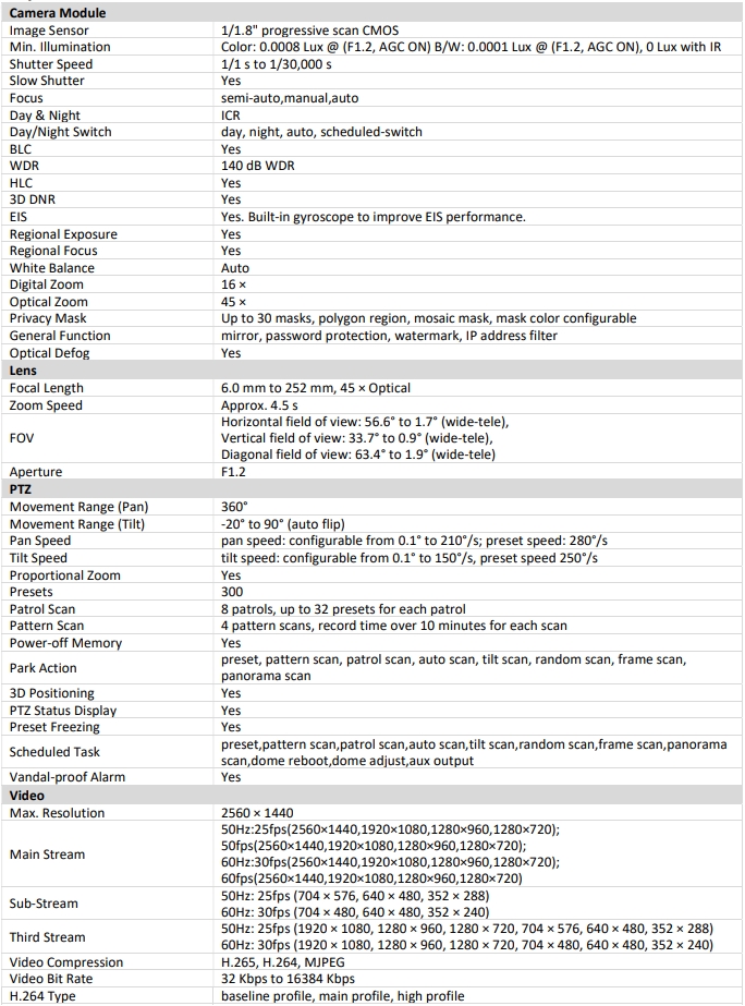 8-дюймовая 4-мегапиксельная 45-кратная сетевая ИК-камера с функцией скоростного купольного видеонаблюдения