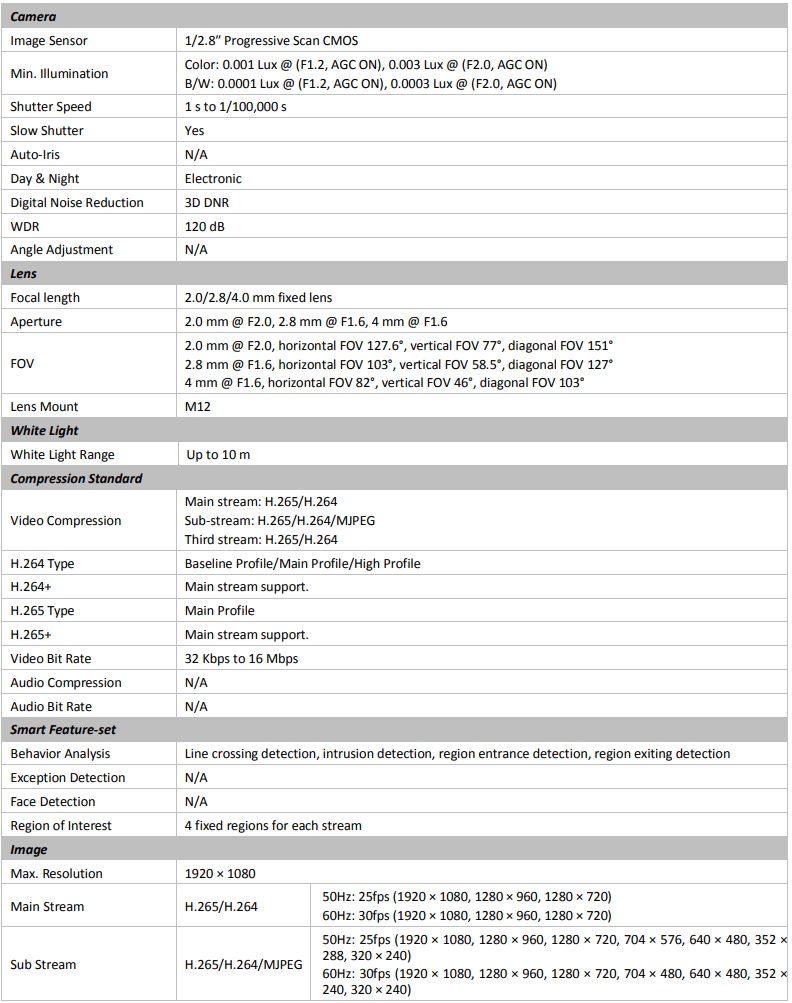 - Фиксированный объектив 2,0/2,8/4,0 мм