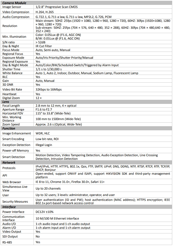 Сетевой модуль камеры Hikvision DS-2ZMN0407 (D) с 2-мегапиксельным ИК-датчиком день/ночь с зумом оснащен 1/2,8-дюймовым КМОП-чипом с прогрессивной разверткой. Благодаря объективу с 4-кратным оптическим зумом модуль камеры обеспечивает более детальное изображение на обширных участках. Эта серия модулей камеры подходит для различных типов скоростных купольных камер и PTZ-камер.