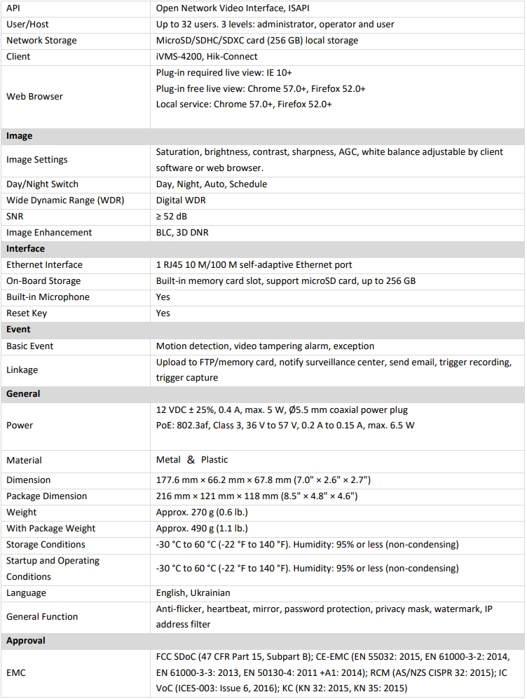 Видеокамера IP цилиндрическая HIKVISION ECI-B12F2