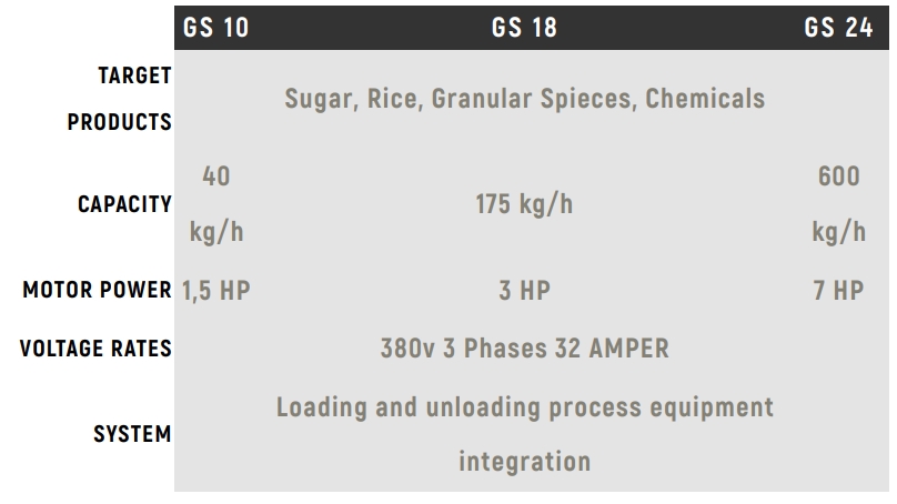 Серия порошковых мельниц от Garanti Roasters, включая GS10, GS18 и GS24, представляет собой надежные промышленные мельницы, предназначенные для сложных операций по измельчению. Эти измельчители идеально подходят для твердых материалов, таких как сахар, рис, специи или химикаты, обеспечивая мелкую микротолщину (от 50 до 300 мкм) с помощью настраиваемых сит. Разработанные с мощным двигателем для обеспечения высокой производительности, они лучше всего подходят для районов с промышленной электрической инфраструктурой. Эти порошковые мельницы обеспечивают качество, беспыльное производство и безопасность пищевых продуктов. По запросу доступны такие опции, как хромирование поверхности. Серия GS предлагает различные размеры для различных производственных мощностей, обеспечивая эффективность и точность измельчения.