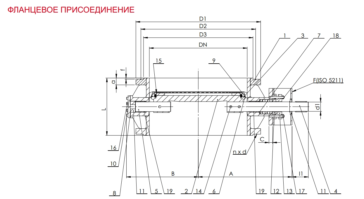 | Тип присоединения | Фланцевое по EN 1092-1, DIN 2631, ГОСТ 12815-80 Ряд 1 |