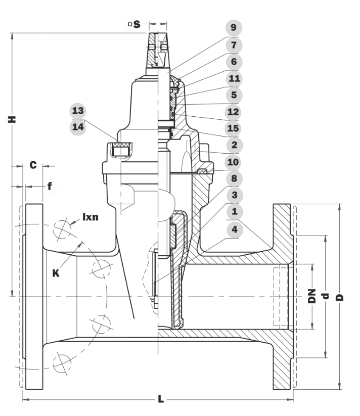 | Материал клина | Латунь (DN32) / Чугун с шаровидным графитом (DN40-DN600) с резиновым покрытием EPDM/NBR |