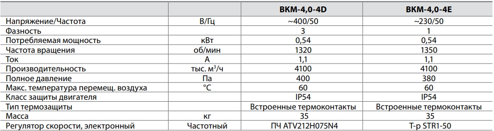 Корпус вентилятора выполнен из оцинкованной стали. Рабочее колесо вентилятора выполнено с загнутыми назад лопатками правого направления вращения. Вентилятор ВКМ комплектуется электродвигателем однофазным на напряжение 220 В с внешним ротором.