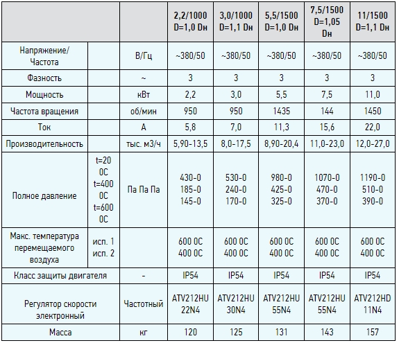 Вентиляторы в исполнении 01 предназначены для удаления при пожаре дымовоздушных смесей с температурой до 600 °С в течение 90 минут.
