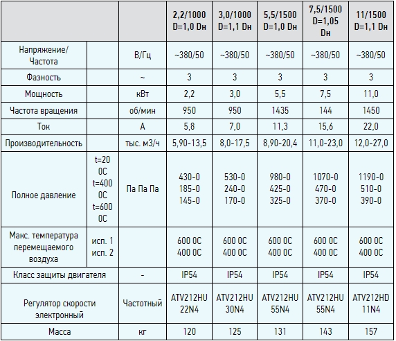 Вентиляторы в исполнении 01 предназначены для удаления при пожаре дымовоздушных смесей с температурой до 600 °С в течение 90 минут.