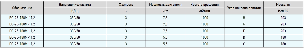 Особенностью вентиляторов является возможность установки лопаток под разными углами, благодаря этому вентилятор с одним диаметром колеса обеспечивает целую область режимов. Вентилятор изготавливается на стойке (исполнение 02).
