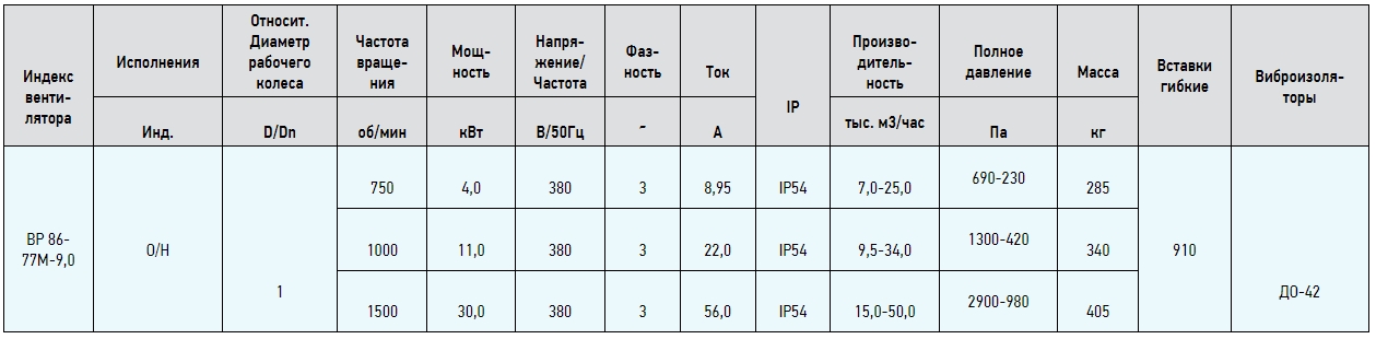 Вентиляторы серии ВР 86-77М представляют собой радиальные вентиляторы одностороннего всасывания с рабочими лопатками, загнутыми назад. Направление вращения — правое и левое. Корпус вентилятора изготовлен из оцинкованной стали. Привод — трехфазный асинхронный электродвигатель. Для защиты от перегрева вентиляторы серии ВР 86-77М снабжены встроенными термодатчиками с выводами для подсоединения устройства защиты двигателя.