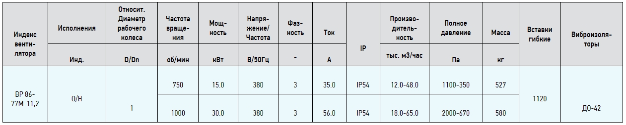 Вентиляторы серии ВР 86-77М представляют собой радиальные вентиляторы одностороннего всасывания с рабочими лопатками, загнутыми назад. Направление вращения — правое и левое. Корпус вентилятора изготовлен из оцинкованной стали. Привод — трехфазный асинхронный электродвигатель. Для защиты от перегрева вентиляторы серии ВР 86-77М снабжены встроенными термодатчиками с выводами для подсоединения устройства защиты двигателя.