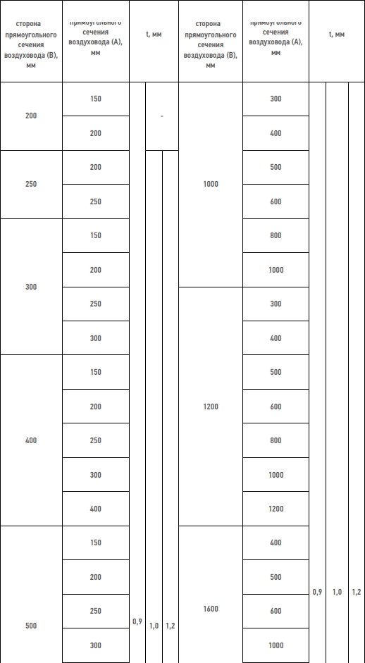 Воздуховод дымоудаления прямоугольный прямая часть из оцинкованной стали