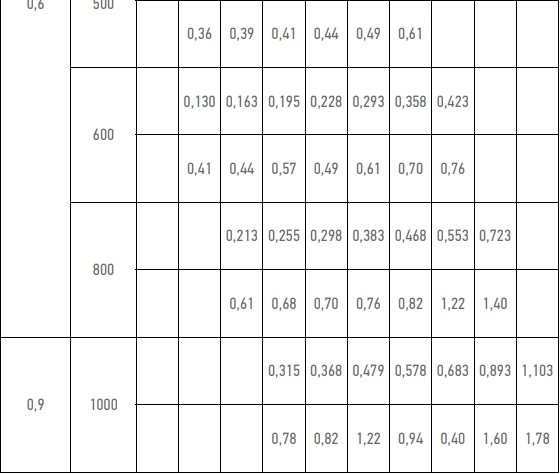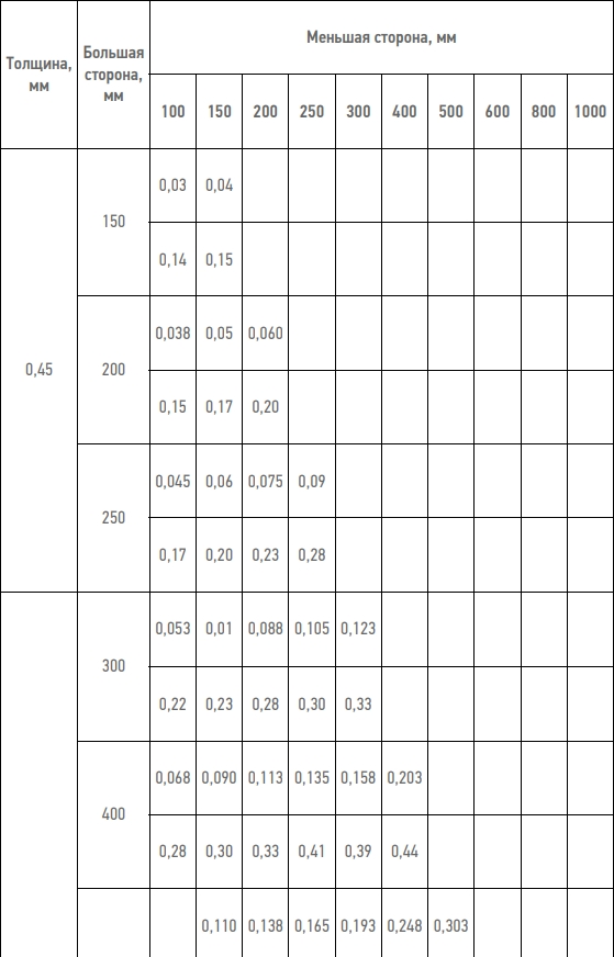 Значение площади поверхности и массы приведено для наиболее применяемых размеров
