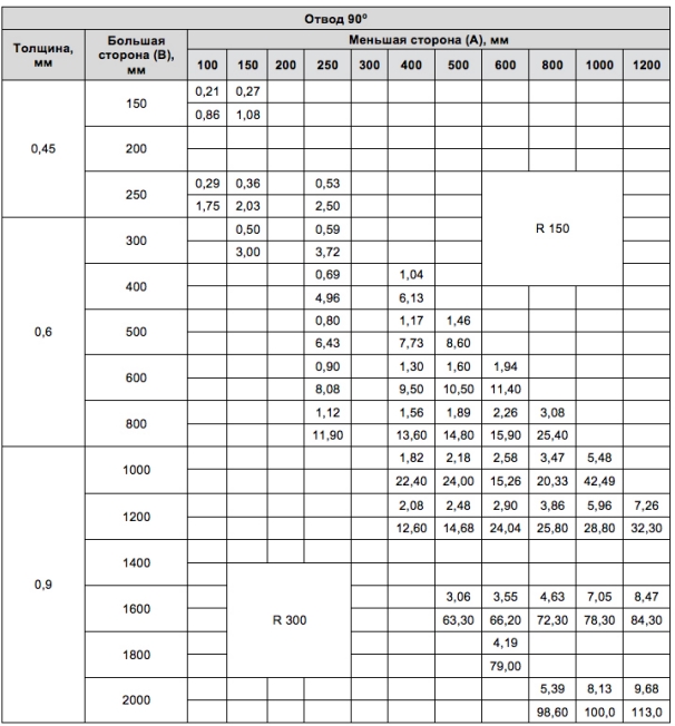 Отводы могут иметь различный угол поворота, диаметр, радиус и длину. Наиболее популярны варианты с углом 45° и 90°. Вид изделия выбирают в соответствие с особенностями помещения, где монтируется вентиляционная система. Каждый отвод имеет в конструкции ниппельное соединение для монтажа в системе вентиляции.