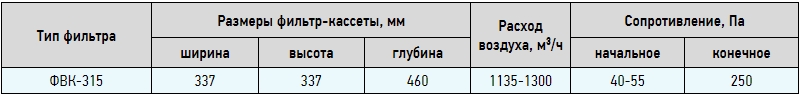 Фильтр ФВК состоит из корпуса и фильтрующего элемента (карманная фильтр-кассета). Корпус изготавливается из оцинкованной стали; крышка крепится у корпусу простыми защелками. Корпус фильтра снабжен круглыми патрубками для подсоединения воздуховодов или компонентов вентиляционной системы. Фильтр-кассеты устанавливаются в направляющих и поэтому легко извлекаются при замене. Фильтрующий материал выполнен из синтетического волокна и имеет класс очистки G3, G4, F5, F7.
