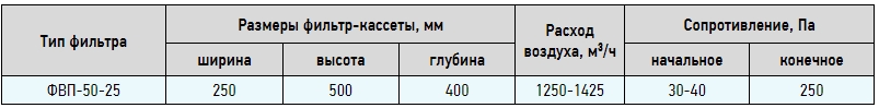 Фильтры ФВП могут эксплуатироваться при температуре рабочей среды от минус 40 °С до плюс 70 °С. Окружающая среда и фильтруемый воздух не должны содержать агрессивных газов и паров.