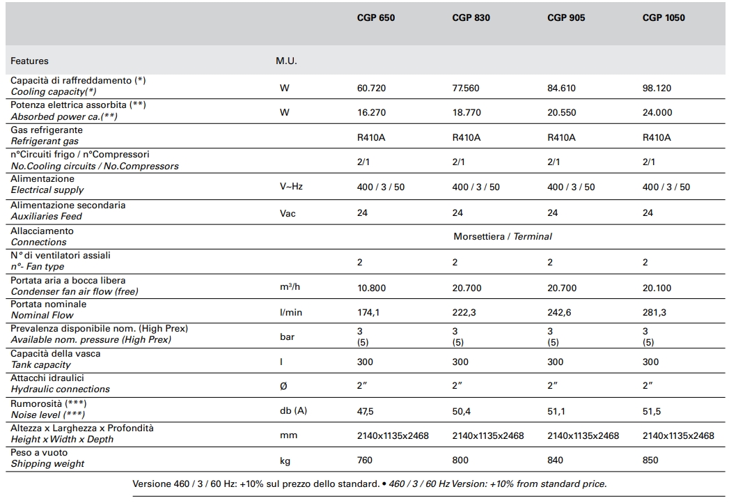 Основные характеристики по сравнению со стандартным CGW: пониженное потребление электроэнергии, высокоэффективные вентиляторы, наружное исполнение до -10 ° C окружающей среды, испаритель из стальных пластин, контур из цветных металлов, директива ErP2021 SEPR (UE) 2016/2281.