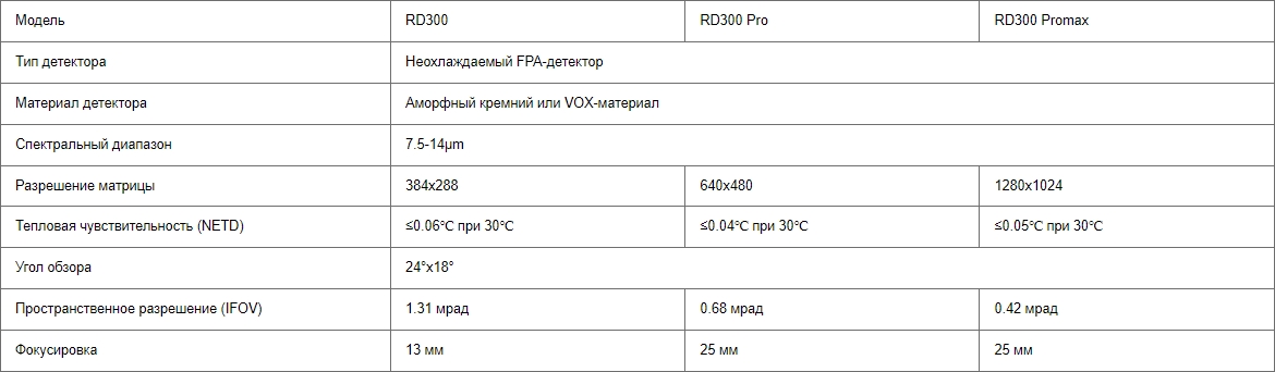 Torus RD300 — высокоточный тепловизор с разрешением ИК-матрицы 384х288 px. Угол обзора прибора составляет 24°x18°, а пространственное разрешение — 1.31 мрад. Устройство подходит для работы в температурном диапазоне от -20˚С до +50˚С. Благодаря компактным габаритам и небольшому весу (менее 1кг) тепловизор подходит для использования в полевых условиях.