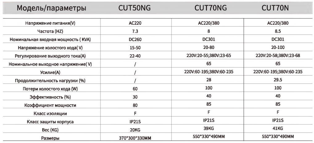 - Хорошая прочность дуги, чистый разрез, отличные технологические характеристики резки
