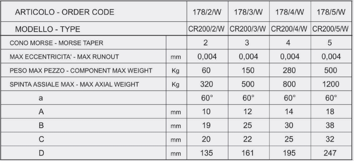 Передовая техническая концепция с простой и надежной конструкцией, ориентированная на наиболее востребованные традиционные формы. Корпус изготовлен из специальной цементированной, закаленной и шлифованной стали, а вал — из инструментальной стали, прошедшей сквозную закалку и, следовательно, допускающей многократную шлифовку. Благодаря прочному сечению вала, точно подобранным подшипникам и компактной передней бабке, задние бабки серии CR наиболее приспособлены для выдерживания значительных радиальных и осевых нагрузок. Задний конец вала поддерживается игольчатыми подшипниками. Значительная длина вала обеспечивает работу без вибраций. Задняя бабка защищена от стружки, воды и пыли. Задние бабки серий CR150, CR200, CR250 с множеством взаимозаменяемых принадлежностей представляют собой универсальные задние бабки, подходящие для черновой и чистовой обработки. Высокотехнологичная конструкция со всеми традиционными формами центров. Корпус изготовлен из высококачественного кованого материала, что гарантирует однородную структуру с максимальной стабильностью и несущей способностью. Полностью закаленный корпус значительно увеличивает срок службы. Центр изготовлен из высококачественной инструментальной стали, закален методом пропитки и может многократно перешлифовываться. Замечательный диаметр центра, широко расположенные ролики и сравнительно короткая головка обеспечивают центрам серии CR значительную радиальную и осевую нагрузку. Задняя часть центра поддерживается игольчатым подшипником. Специальное уплотнительное кольцо защищает подшипник от охлаждающей жидкости и грязи. Вращающиеся центры серий CR150, CR200, CR250 со всеми поставляемыми принадлежностями являются универсальными вращающимися центрами для тонкой и черновой обработки.