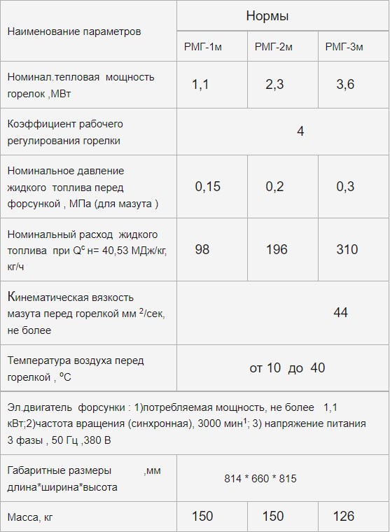 Жидкотопливные мазутные и дизельные горелки ротационного типа РМГ-1М и РМГ-1 АР-90 предназначены для распыла и сжигания жидкого топлива в топках водотрубных котлов типа Е, КВ-ГМ соответствующей тепловой мощности. Кроме котлов эта мазутная горелка давно используется и на оборудовании типа барабанная сушилка в таких отраслях как производство строительных смесей, дорожном строительстве (для подогрева мазута, сушка песка , сушка щебня).