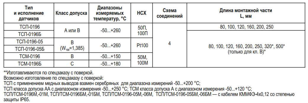 - ТСМ-0196, ТСП-0196: d=6 мм;