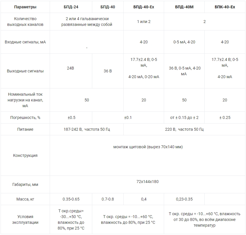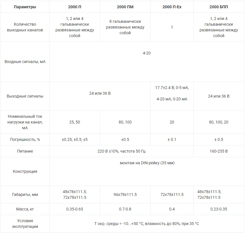 | Количество выходных каналов | 1, 2 или 4 гальванически развязанные между собой |